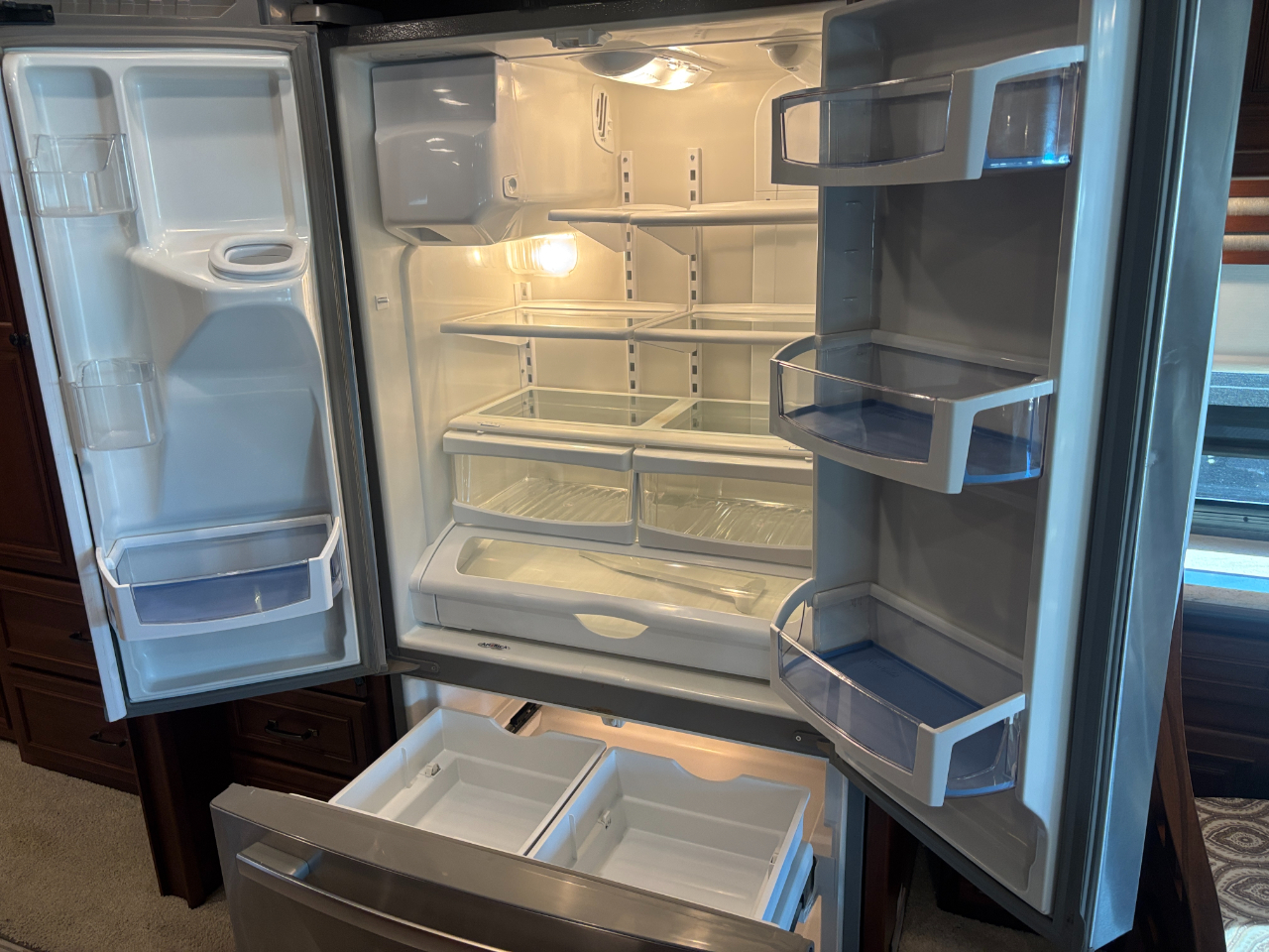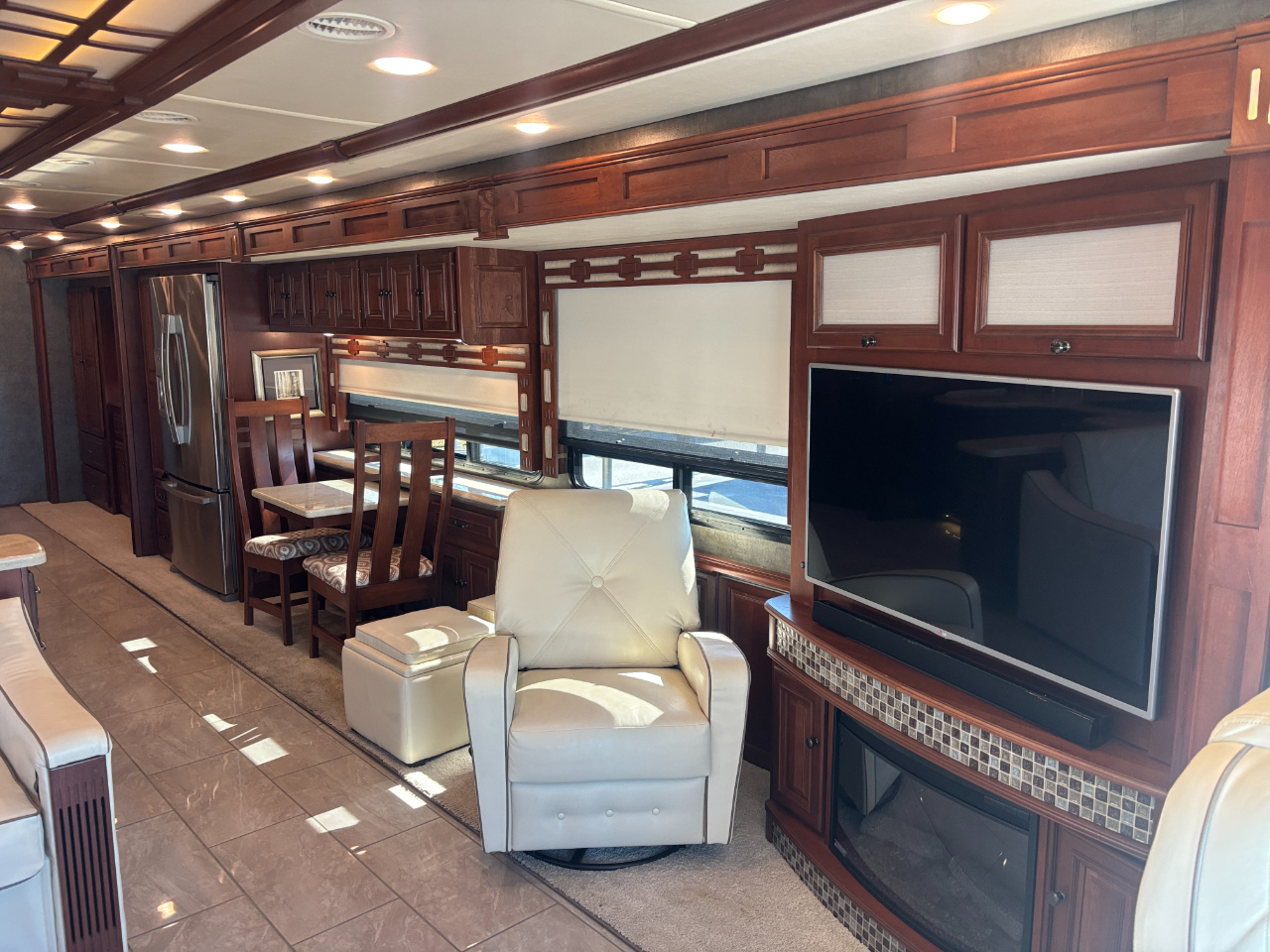 Immaculate condition 2015 Itasca Ellipse QD Luxury diesel pusher with no under body rust or corrosion and only 14,927 original miles. Absolutely stunning with solid cherry cabinetry and doors, solid surface counters throughout, real leather seating surfaces, sectional sofa with bed, recliner with desk, dinette with extra chairs, ceramic tile floors, fiberglass shower with glass doors, stackable washer dryer, large kitchen with loads of counter space and storage, dish washer, full size residential refrigerator with indoor water and ice, Aqua-hot water heater, Cummins 450 diesel with 10,000 pound towing rating, Onan 10,000 diesel generator with only 360 hours, outside entertainment, huge flat screen TV with hidden bar and safe, king size bed, ceiling fan, satellite TV, huge pass through basement with drawer and all new tires in 2024. You will not find a cleaner better maintained 2015. Fully inspected and serviced with a fresh engine and generator oil change. Easy financing for up to 20 years is also available. RV warranty is also included with a $0 deductible covering parts and labor. Call Craig Miller at 317-442-1512 with questions or to schedule your appointment. Be sure to review all of our photos along with its free Carfax report at indyautosource.net. Click on our ''Cars'' icon to review over 200 perfect 5.0 customer reviews.
